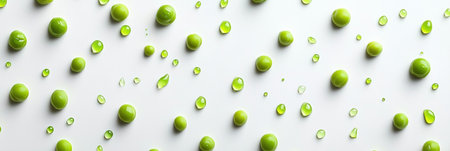 Bright green peas and fresh juice on a white background create a refreshing setup ideal for healthy dishes.