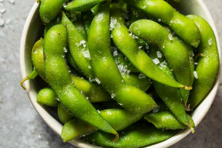 Healthy Japanese Edamame Pods with Sea Salt for an Appetizer