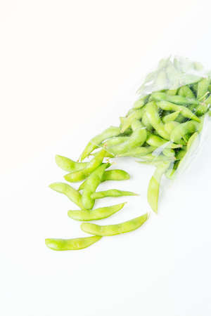 Green soybeans on white background