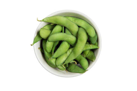 isolated a bowl of green soybeans on the white background