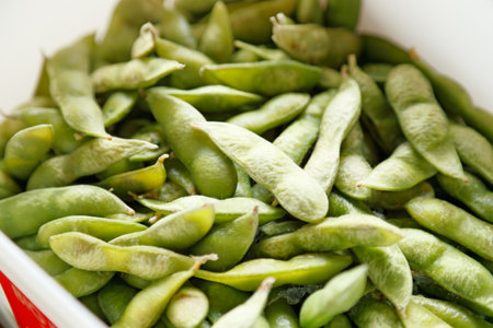 Organic Green Edamame Beans. Tasty Edamame image.