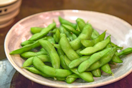 Japanese healthy appetizer edamame green soy beans