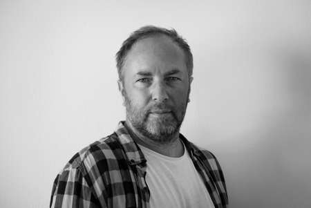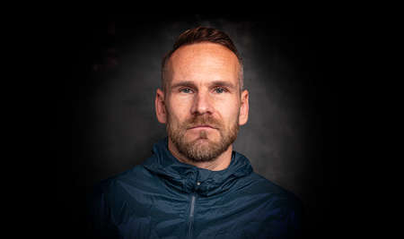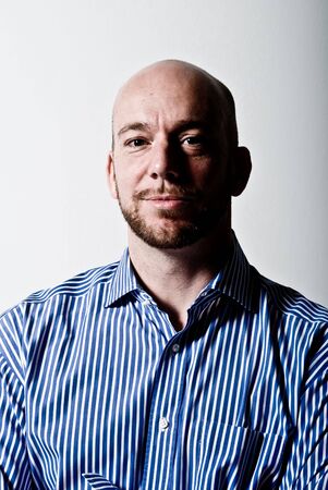 Close-up portrait of a man with a neutral expression, looking directly at the camera