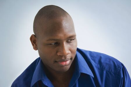 Studio shot of African man looking down