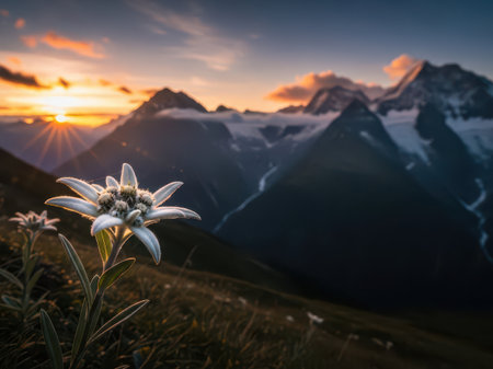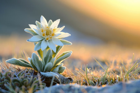 The Edelweiss basking in sun-kissed splendor, radiating a warm glow on its pristine petals