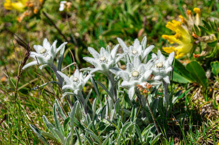 Leontopodium alpinum, commonly called edelweiss on Bijele stijene mountains in Croatia