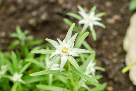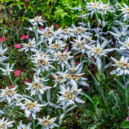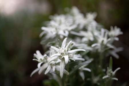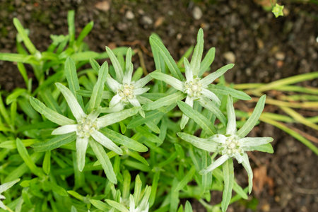 cultivation of edelweiss flowers in a botanical garden in mountain