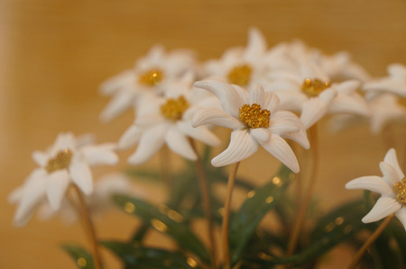 Gentle white Leontopodium nivale, edelweiss mountain flowers, close up. Abstract.