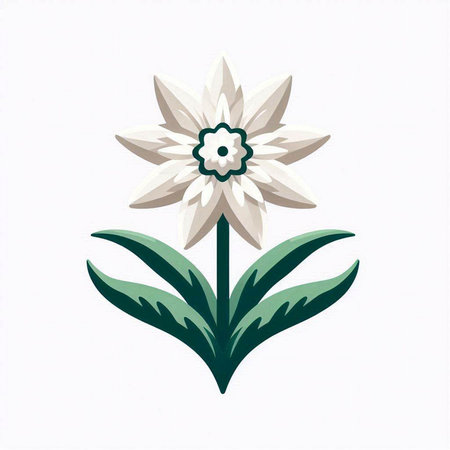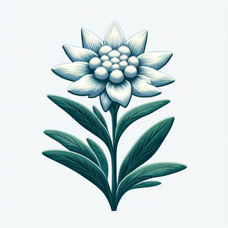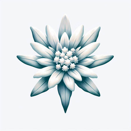 Edelweiss flower, a symbol of purity and rugged beauty, captured in a detailed macro shot on a rocky alpine slope. the white, star shaped bloom contrasts with the harsh mountain environment and blurred background.