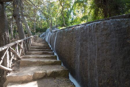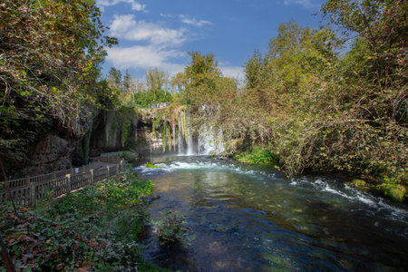 Duden Waterfalls is a famous landmark of Antalya, Turkey. Upper Duden Waterfalls is located in Duden National Park. Water flowing trought the park.