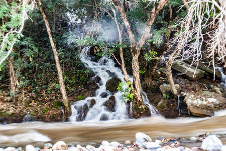 Long exposure at the waterfalls of Kria in Livadeia in Greece. A famous touristic destination.