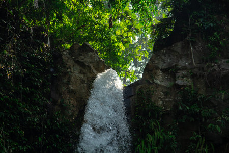 Waterfall scenery background surrounded by greenery in the forest