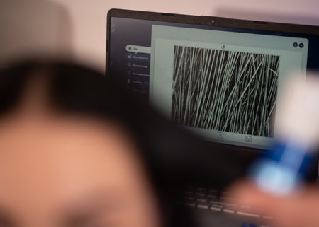 Doctor diagnoses the structure of the hair. Consultation with a trichologist.