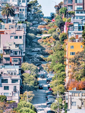Lombard Street is the most famous winding street, in the world, the city of San Francisco, and California, USA. The photo was processed in pastel colors.