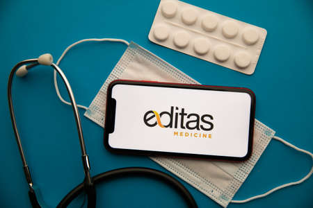Tula, Russia - September 07, 2021: Editas Medicine logo on iPhone display