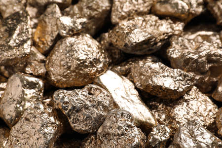 Pile of gold nuggets as background, closeup