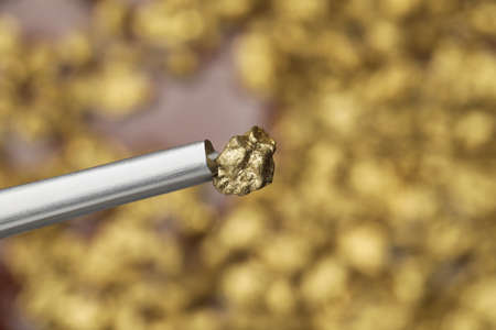 nugget of raw gold, the most expensive gemstone in the world. Mining and mineral extraction concept.