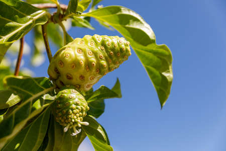 Noni tree, Morinda citrifolia. A medicinal fruit with unique properties.