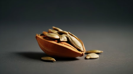 AI Generated. Papaya halves revealing dark seeds spreading across vivid orange surface with playful symmetrical composition