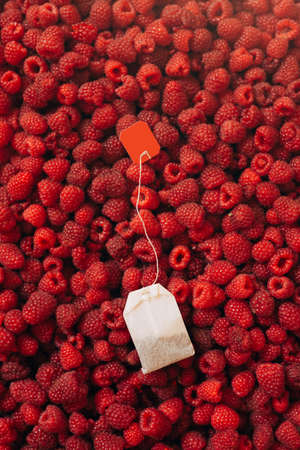 Close up image of fresh raspberries, summer concept, background image from above, food flatlay