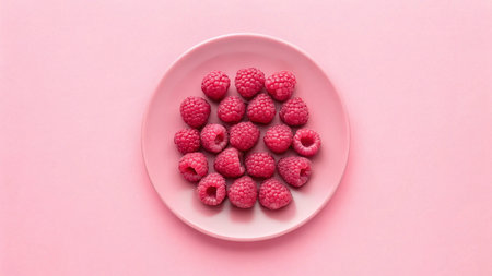 This image showcases fresh red raspberries beautifully arranged in a circular pattern against a soft beige background, perfect for culinary projects or healthy eating concepts.