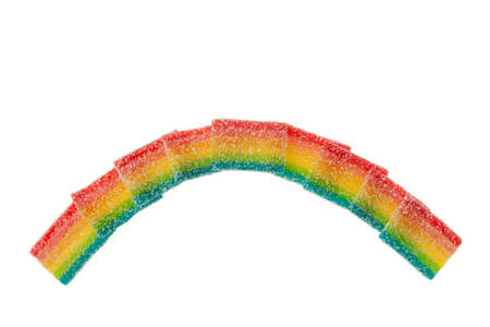 Fruit marmalade with natural juice and pectin in the form of rainbow isolated on white background. Sweet fruit rainbow.