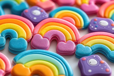 A vibrant collection of sweet, colorful candy in a row generated by artificial intelligence