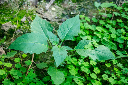 leaf of Irish wildflower Lesser Burdock, Artium minus, during the summer