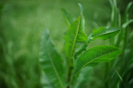 Beautiful green background cannabina, a perennial herbaceous plant in a meadow in summer