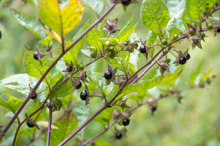 Berries of Atropa bella-donna. Fruits of deadly nightshade. The plant is commonly known as belladonna.