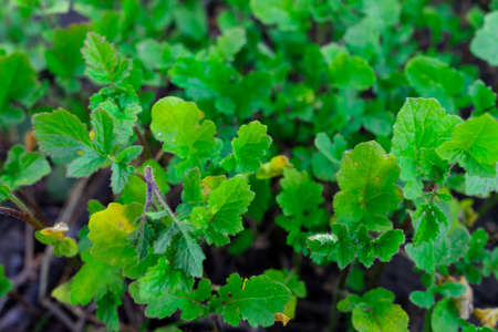 fresh green young mint in the garden, mint sprouts close-up. green bush. sunny day.
