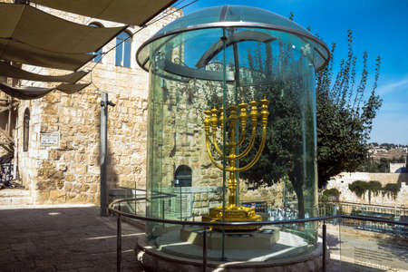 Golden Menorah - copy of one used in Second Temple in Jewish Quarter. Jerusalem. Israel