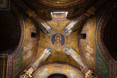 Florence, Italy - September 08, 2017: Golden ceiling of the Florence Baptistery of San Giovanni (Battistero di San Giovanni) in Florence. Interior of the Florentine baptistery.