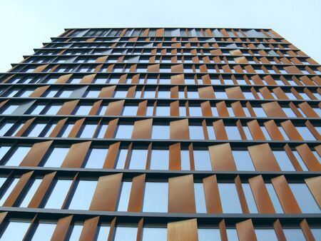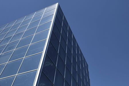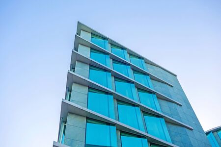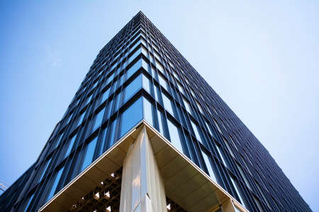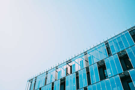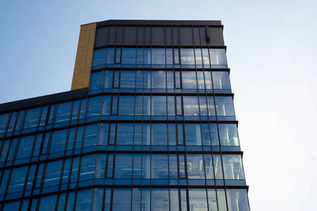 A part of modern business building against blue sky. Stylized modern office building.