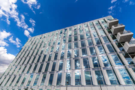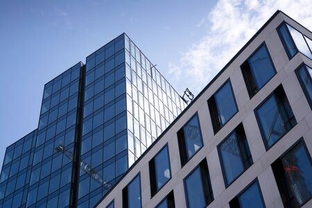 Modern office building with reflection in windows of building. New office building in the city center.