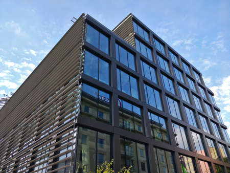 Stuttgart, Germany - November 1, 2015: Detail of a modern office building in the urban city district Europaviertel near the main railway station.