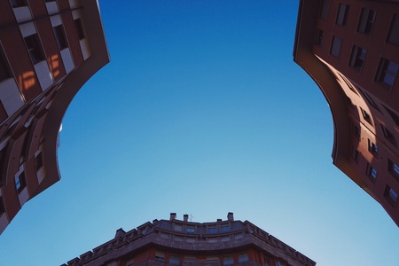 View of the sky between buildings