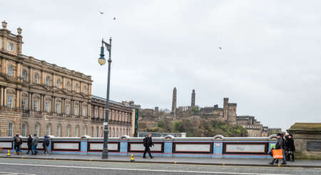 Edinburgh, Scotland - December 30, 2016: People are walking on the North Bridge in Edinburgh, Scotland, UK