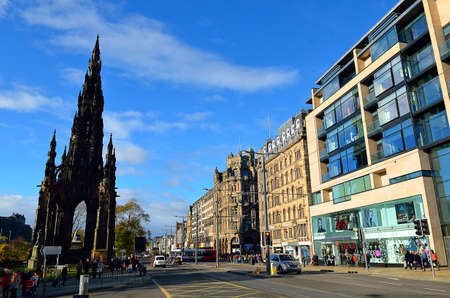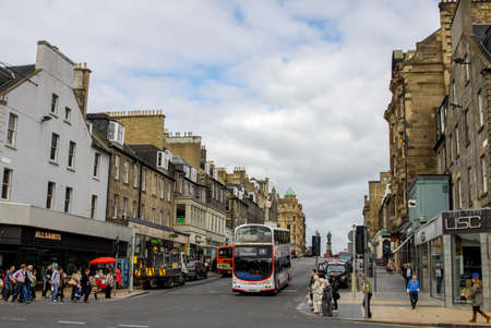 EDINBURGH, UK - OCT 8: City street view with traffic on October 8, 2013 in Edinburgh. As the capital city of Scotland, it is the largest financial centre after London in the UK.