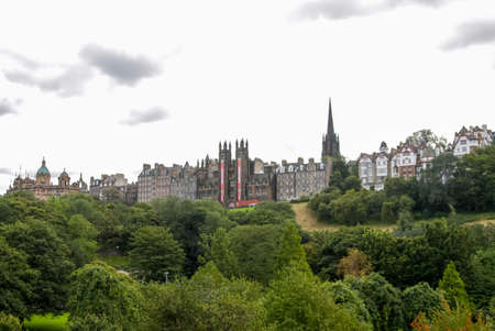 Edinburgh, Scotland, UK - June 29, 2011: Palaces and castles of Edinburgh, the capital of Scotland. Old city. Streets and buildings of Edinburgh.