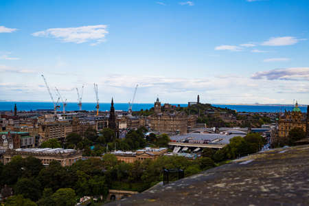 United Kingdom, Edinburg - 24 August, 2021: City of Edinburgh view from the castle mountain