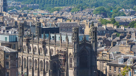 Edinburgh city rooftop view with historical architectures. United Kingdom.