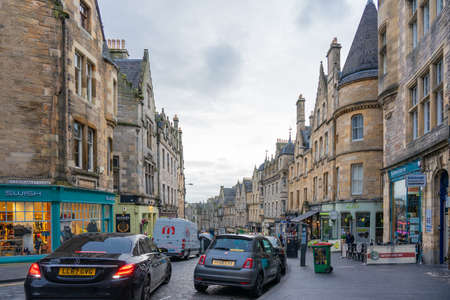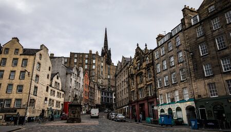 EDINBURGH, SCOTLAND - March 27, 2017: Street view of Historic Old Town Houses in Edinburgh, Scotland