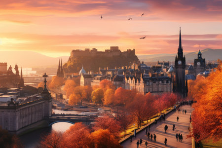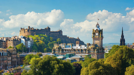 The charming cityscape of Edinburgh, Scotland, with its medieval Old Town and majestic Edinburgh Castle.