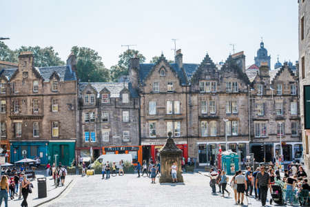 Edinburg, UK - August 23, 2021: Johnson terrace view with cars, people and old houses