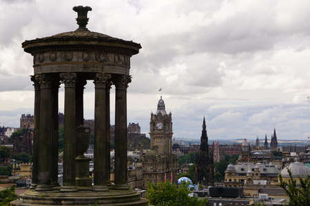 monument on Calton hill and view on historical city Edinburgh, capital city of Scotland