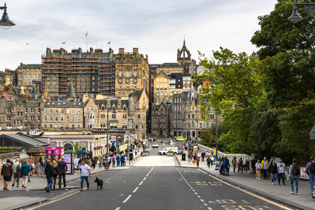 Edinburgh, UK - August 24, 2021: Edinburgh old town entrance from the Central train station