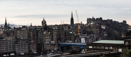 Panoramic view of the centre of Edinburgh in Scotland on a cloudy day