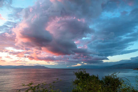 View on Trpejca and coast of Lake Ochrid from Mountains of Galicica National Park, Macedonia.