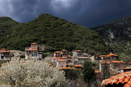 Beautiful traditional architecture on mountain of Mainalo. Stemnitsa village in Greece. Stemnitsa village,Peloponnese. Greece